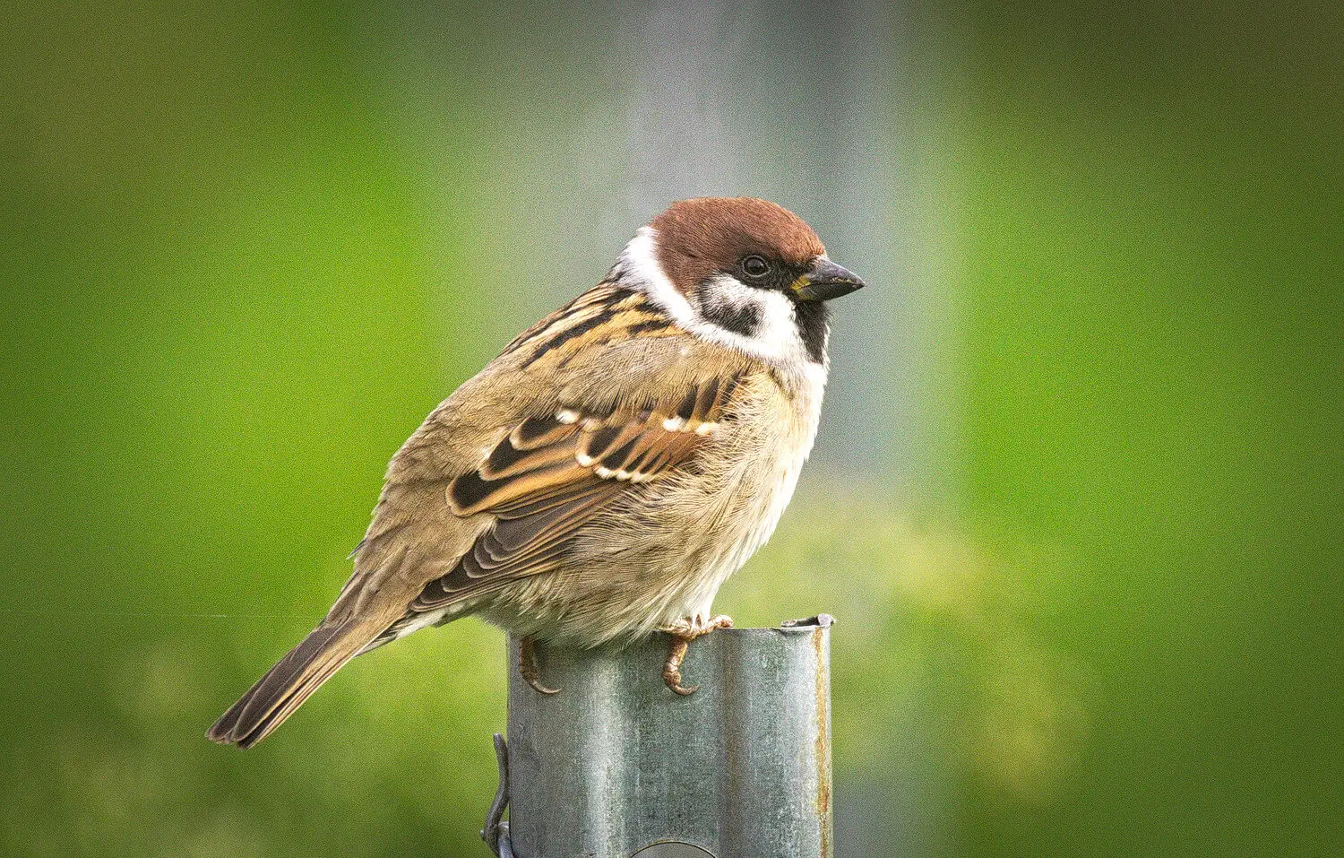 Aufgepasst: Neben dem Haussperling, gibt es auch den Feldsperling. Feldsperlinge unterscheiden sich von Haussperlingen durch den fehlenden Unterschied im Federkleid von Männchen und Weibchen (beim Haussperling sehen beide Geschlechter unterschiedlich aus). Feldsperlinge sehen auf den ersten Blick männlichen Haussperlingen etwas ähnlich, sind jedoch kleiner und haben anstatt einem grauen Kopf, einen eher schokoladenbraunen Kopf sowie einen markanten schwarzen Wangenfleck. Sie leben eher in der offenen Landschaft oder am Dorfrand, und sind nicht so stark an urbane Gebiete gebunden wie der Haussperling. Doch ganz kann man die Lebensräume von beiden nicht auf Stadt oder Land aufteilen.