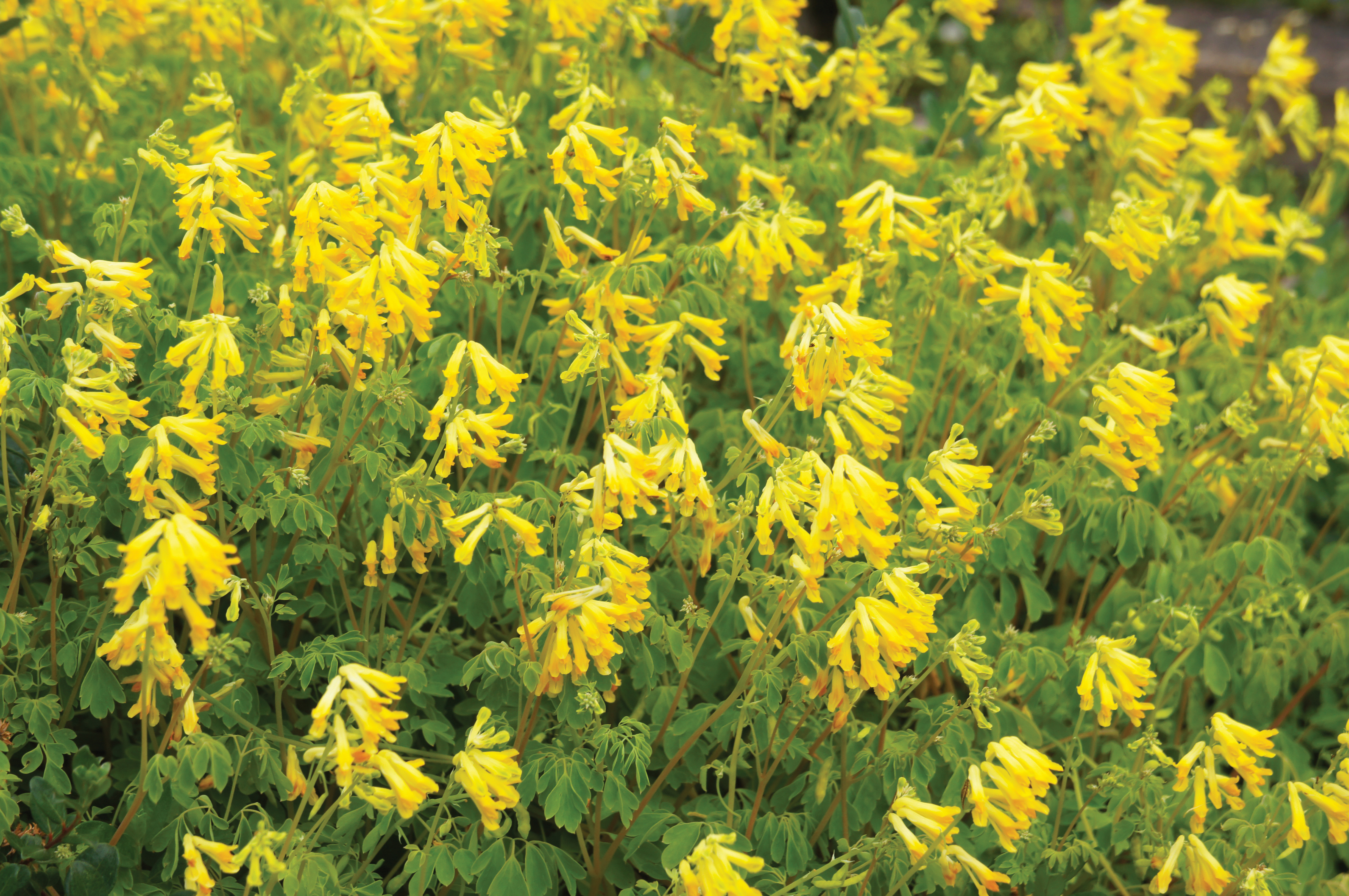 Véritable eye catcher grâce à ses jolies fleurs jaunes, le Corydale jaune est une plante vivace  qui fleurit abondamment (de mai à septembre) dans les jardins. Il se ressème abondamment et existe également à l’état sauvage, dans la nature, sur les sols rocailleux et calcaires. Il colonise les anfractuosités des murs et se retrouve également dans les endroits ensoleillés garnis de haies sauvages ainsi que dans les bois clairsemés. Le Corydale jaune est une plante ornementale appréciée par les amateurs de jardins de rocaille. Même dans les parcelles difficiles à reverdir, le Corydale jaune s’adapte aisément. Il pousse en touffes buissonneuses et atteint une hauteur de 15 à 20 cm. D’un côté, il se ressème par auto-ensemencement, de l’autre côté, ses graines sont dispersées par les fourmis.